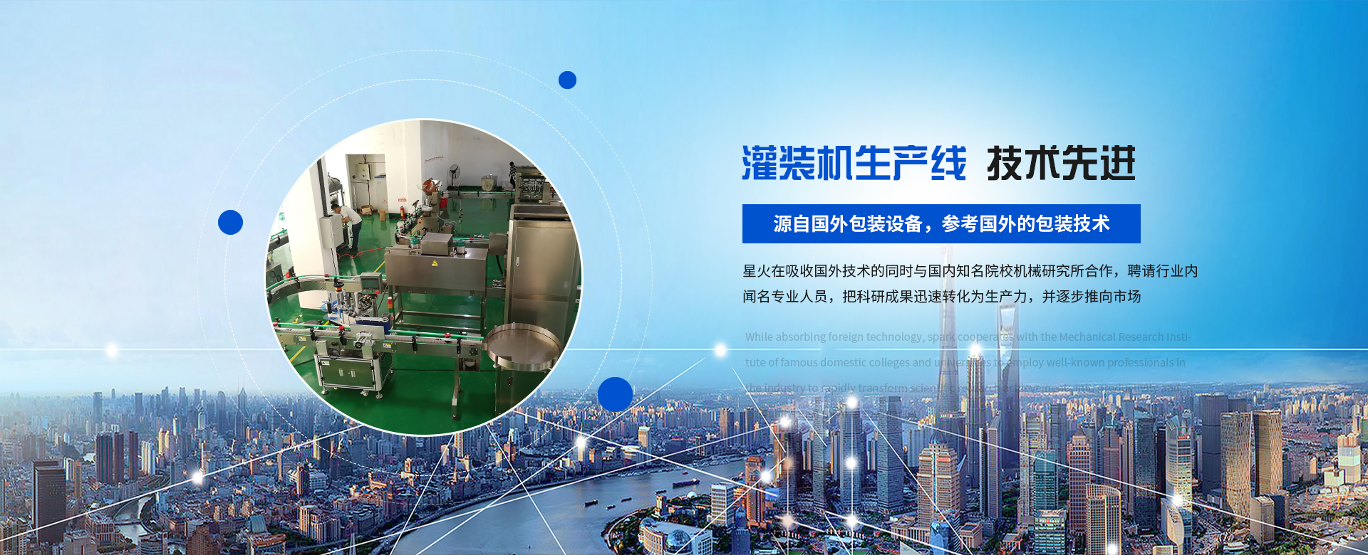 源自國外包裝設(shè)備,參考國外的包裝技術(shù),與國內(nèi)知名院校機(jī)械研究所合作。灌裝機(jī)等設(shè)備已擁有十多項(xiàng)產(chǎn)品知識產(chǎn)權(quán)和專利技術(shù)